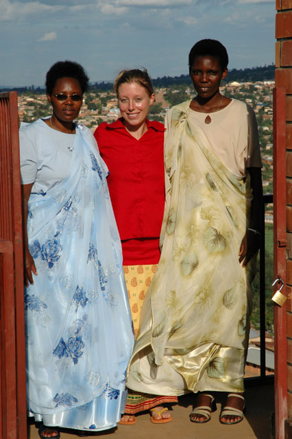 Les photos se passent de commentaires... Une fois de plus, nous sommes visuellement gâtés! Les danses sont magnifiques et transportent toute l'assemblée dans une liesse générale. En plus de leur grâce et élégance naturelles, les danseurs arborent aux lèvres un continuel sourire. La fête se déroule aux portes du quartier de Nyamirambo, à quelques mètres de la mosquée de Kigali, plus précisément dans le centre de santé espagnol de Kwaniranuma. La propriété est grande, englobant un centre de santé fournissant la trithérapie (traitement contre le VIH / SIDA), une cuisine et réfectoire, des classes d'école maternelle et l'une des habitations des soeurs espagnoles de Vita et Pax. En contre-bas de la parcelle, la vue panoramique permet d'apercevoir un bon échantillon du relief de Kigali. Tout comme le Rwanda en général, Kigali possède ses collines verdoyantes. C'est à l'extérieur, sous un agréable soleil de fin d'après-midi, que tous les invités terminent cette journée mémorable. Ultime moment pour prendre quelques dernières photos de groupe, avant de regagner ses pénates! |