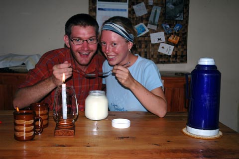 maintenant tous nos petits appareils et surtout l'ordinateur portable. Mais n'imaginez pas qu'Éric est un mauvais ouvrier! Grégoire est monté sous le toit pour trouver l'endroit où sont connectés les câbles, et franchement, dans cet enchevêtrement de câbles, même le meilleur des électriciens ne peut pas s'en sortir... Les branchements sont similaires à ceux de que nous avons rencontrés dans l'hôtel à Mombasa. Aujourd'hui même Éric est venu corriger ce branchement. Armé cette fois-ci de son voltmètre: il n'a laissé aucune chance au hasard. |