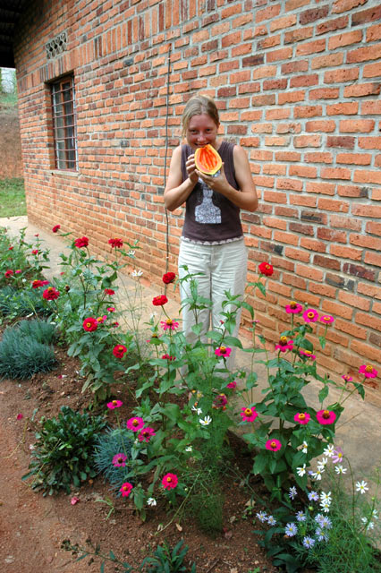 Aujourd'hui, lundi 6 décembre 2004, nous avons goûté à la première papaye de notre jardin. A défaut de biscômes, nous fêtons la Saint-Nicolas à la rwandaise. Isabelle apprécie beaucoup, tandis que Grégoire la regarde manger: c'est bien le seul fruit dont il n'apprécie pas le goût! Pour lui, ce fruit a une saveur de vomi... Ceux qui le connaissent bien savent que Grégoire possède une sensibilité gustative particulière et une façon singulière de l'exprimer. A titre d'exemple, le gingembre a pour lui un goût de savon et le vin peut parfois avoir un goût de viande.
