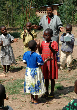 Par le chant, l'ambiance dans la salle de classe s'amplifie! |