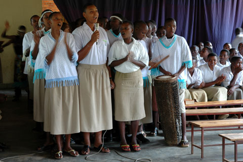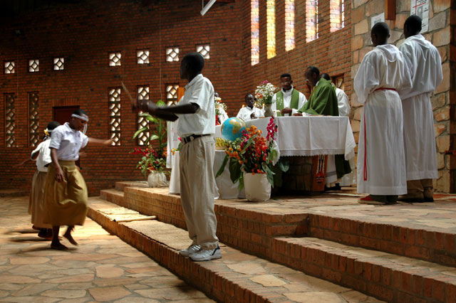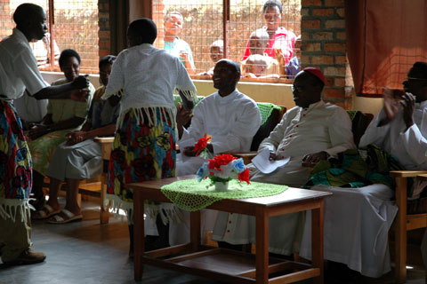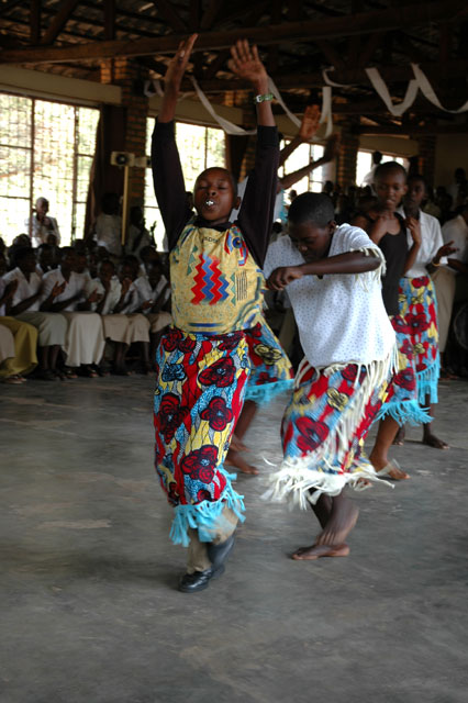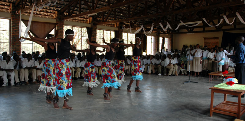 De nombreuses danses traditionnelles rythmées au son des tambours entrecoupent agréablement les différentes prises de parole (les tambours, ça réveille!). De leur propre initiative, deux groupes d’élèves (Amariza et Amaraba) ont préparés ces danses, pour accueillir dignement tous les visiteurs et surtout l'Évêque. La danse la plus acclamée est l'Igishakamba, une danse dédiée