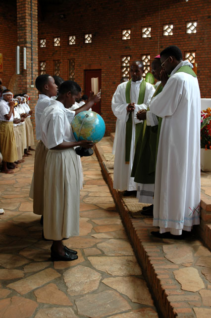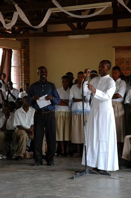 A la suite de cette fête officielle, Monseigneur Servilien visite rapidement les deux nouveaux laboratoires informatiques dont les travaux sont en cours d'achèvement. Puis, toute l’assemblée se dirige vers le centre pastoral de Nyarurema où un excellent repas, apprêté par quelques élèves de l’ETP (des filles uniquement… évidemment!), nous attend. L’ambiance est conviviale et, vers 17h00, la festivités prennent fin . |