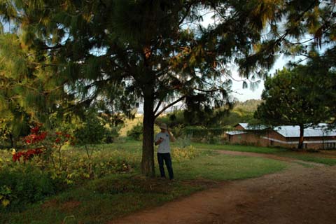 Par contre, lorsqu'il est question de téléphoner et de recevoir des appels nationaux et internationaux, nous montons au sommet de la colline où se situe la paroisse de Nyarurema. Là-bas, à certains endroits, le réseau téléphonique est excellent. Selon nos recherches - pas à pas, nous avons testé la parcelle de la paroisse -, le meilleur endroit est sous le grand arbre proche du portail d'entrée. La qualité de la réception téléphonique est maximale! |