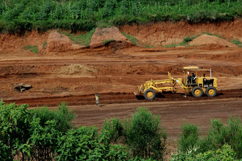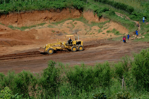 de la population. Pour ce faire, un trax aplanit depuis 15 jours le terrain encore fortement humide, saison des pluies oblige. |